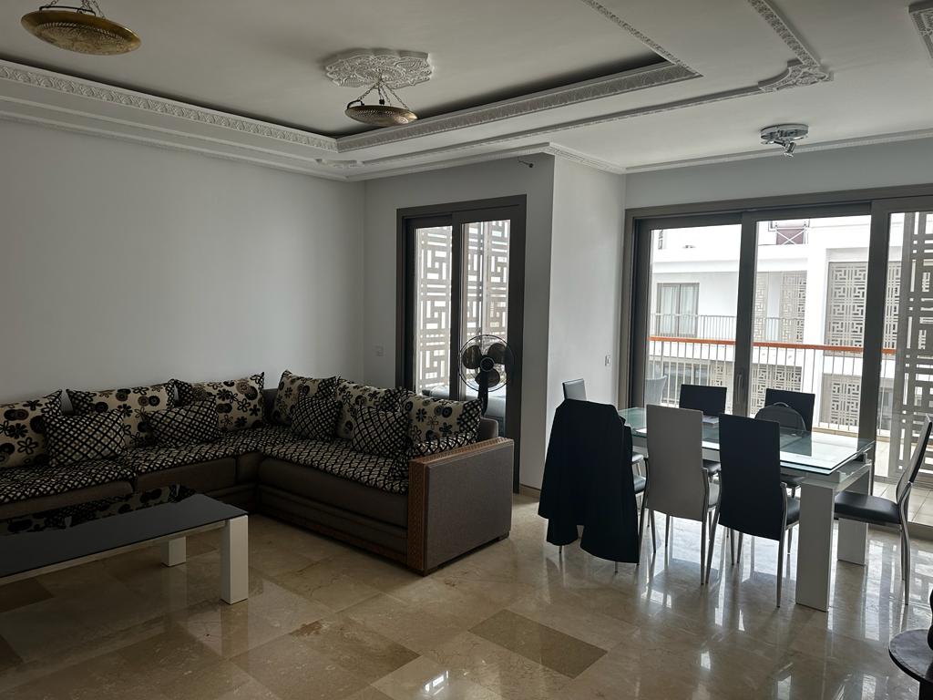 INJIDAB IMMO met en location un très bel appartement joliment décoré, de 170m² dont 50m² de terrasse, bien agencé et bien ensoleillé situé dans une Résidence sécurisée, calme, proche de commerces de proximité (restaurants, cafés, salon de coiffure et d’esthétique, pharmacie, supermarché, épicerie, pressing, bureau de change, kiosque) et non loin de lieux de loisirs (Marina, plage, piscine) permettant de nombreuses activités (aviron, bateau, jet ski, kayak, voile, salle de sports et fitness).