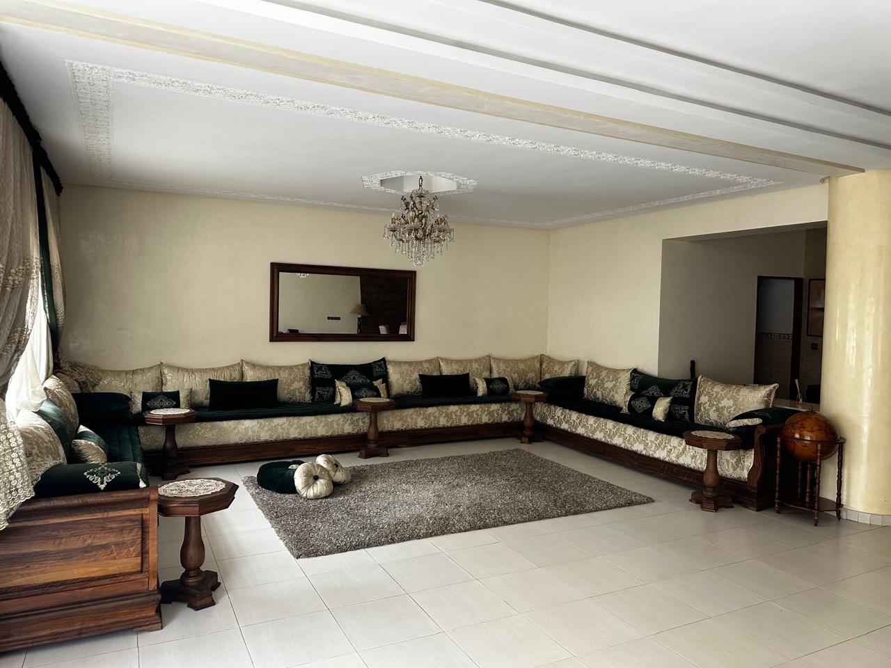 INJIDAB IMMO met en Location un MAGNIFIQUE et COSY appartement situé au quartier Maamora d’une superficie de 265m², bien agencé avec de beaux espaces, ensoleillé toute la journée, situé au 2ème étage, dans une Résidence sécurisée, très bien entretenue, calme attenant aux commerces de proximité:(supermarché, épicerie, salon de beauté, café et restaurants, cliniques pharmacies, et à quelques mètres des écoles) et à des activités de loisirs( club de fitness, terrain de football, club de tennis et d’équitation) et 2 MINUTES DE LA GARE.