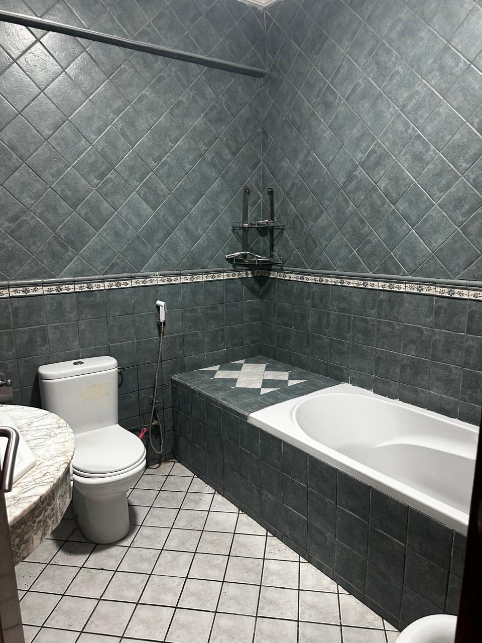 • Une salle de bain familiale avec baignoire.